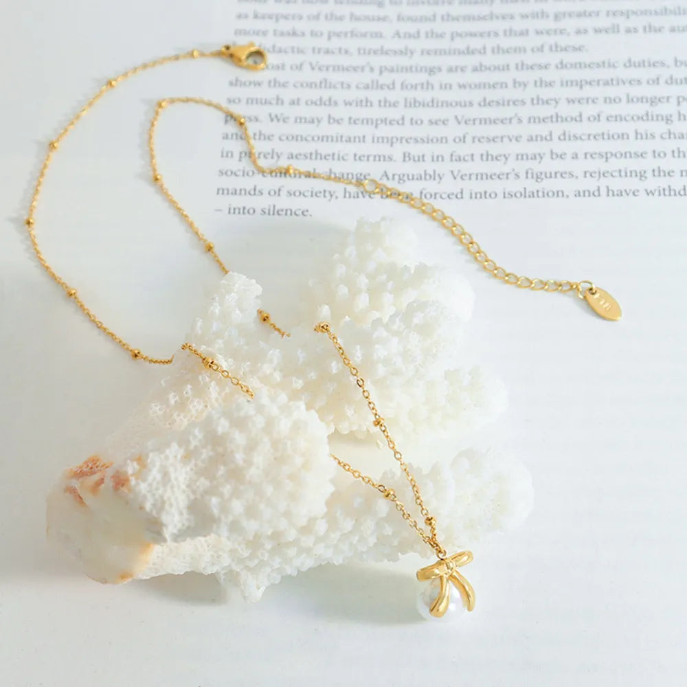 Titanium Steel Bow & Bead Pendant Necklace